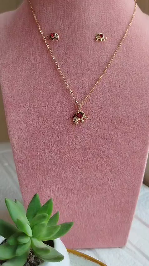 El collar con un dije de elefante y un corazón rojo es una pieza encantadora y simbólica. El elefante, a menudo asociado con la sabiduría, la fuerza y la buena suerte, está delicadamente diseñado, destacando sus características distintivas. El corazón rojo, que cuelga junto al elefante, añade un toque de calidez y amor, simbolizando la conexión emocional y la paz.
